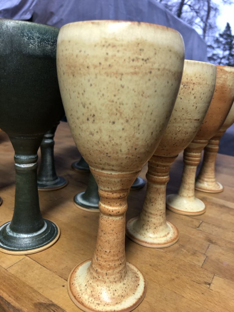 I min studio drejar jag unika vinpokaler, sejdlar, vattenbägare och andra dryckeskärl i stengodslera. Jag gör dem med mycket kärlek och omsorg och min tanke är att min rustika stil ska ge karaktär och referenser åt både det dukade bordet och dryckesupplevelsen. De ska påminna om vinets och om lerans naturliga ursprung. Färgen, formen, djupet i kärlet och tyngden i handen påverkar både den estetiska upplevelsen och smaken. Formen på kärlet är som en hälsning från min hand till användarens taktila känsla. Och sist men inte minst så är mina keramiska produkter fantastiska bärare av temperaturer. Lägg till exempel in en ölsejdel i frysen en stund och låt kärlet hålla drycken kyld länge på en sommarvarm veranda.